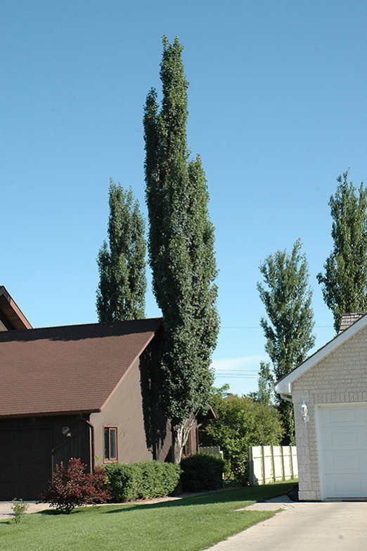 A tall upright spire-like tree, used primarily as a sharp vertical accent or in a row as a very tall screen; fast growing, far more disease resistant than the standard Lombardy poplar; bold and formal in a landscape setting, effective when well used.