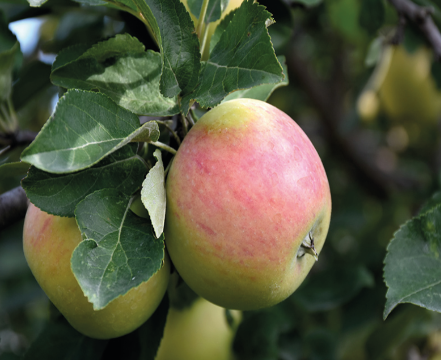 A very hardy green apple with a reddish blush, high quality, great for cooking and eating fresh; eating apples are high maintenance and need a second pollinator; the perfect combination of accent and fruit tree, needs well-drained soil and full sun.
