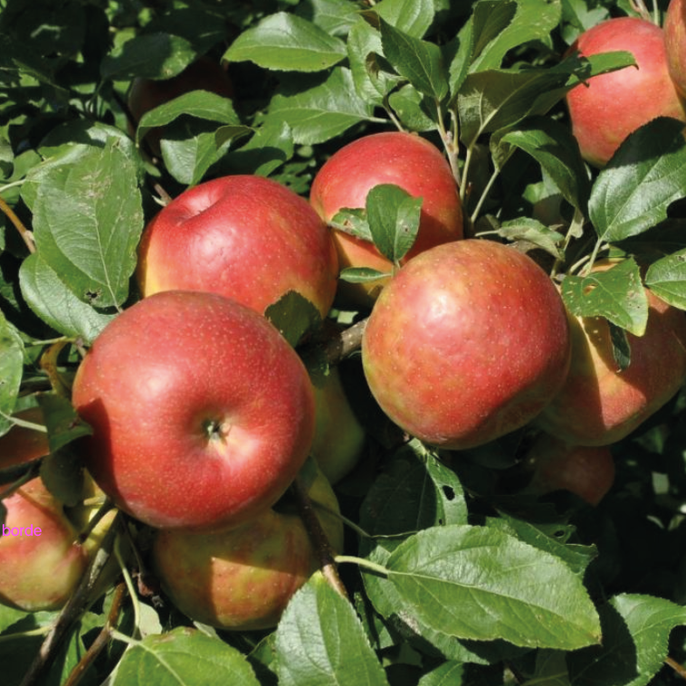 An exceedingly crisp hardy red apple with a sweet and juicy flavor, keeps extremely well; fine texture, need a second pollinator; the perfect combination of accent and fruit tree, needs well-drained soil and full sun.