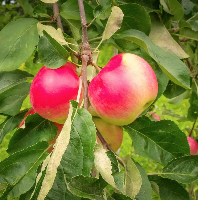 An exceptionally hardy all-purpose yellow-green apple with a reddish blush, keeps well; eating apples are high maintenance and need a second pollinator; the perfect combination of accent and fruit tree, needs well-drained soil and full sun.