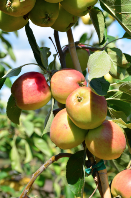 A very hardy red-streaked apple, good for eating fresh, keeps well; eating apples are high maintenance and need a second pollinator; the perfect combination of accent and fruit tree, an abundant producer, needs well-drained soil and full sun.