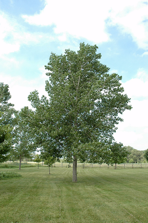 A tall, upright and fast-growing tree with dark green foliage that turns bright yellow in fall; very hardy, cottonless, with deep green bark; has an aggressive root system, so don’t plant near the house; makes a fine windbreak or quick shade tree.